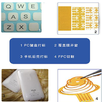 主要用于各種玻璃、液晶屏、紡織品、薄片陶瓷、半導(dǎo)體硅片、IC晶粒、藍寶石、聚合物薄膜、噴油層、電鍍層、FPC等材料的打標、表面處理和切割。
